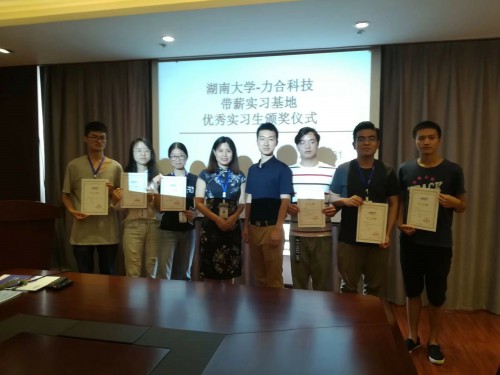 赴力合科技暑期实习生在公司9楼会议室内举行了实习总结大会。大会期间,各位实习生交流了各自的实习收获和感想,并由力合科技人力资源部主管吕琴和带队老师文一章为各位实习生颁发优秀实习生证书,为期一个月的湖南大学-力合科技带薪实习到此圆满结束。