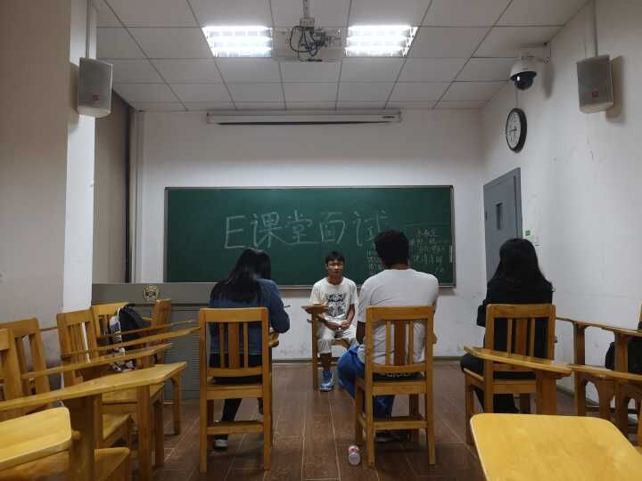 活动招募阶段,热情的宣传吸引众多心动的同学填写报名表,外联实践部干事根据参与人数进行了前期分批工作,并以短信的形式通知同学面试。28日晚六点之前,已经陆续有同学来到综合楼313教室签到候场。候场期间,同学们入座后便开始查看E课堂相关材料、梳理对自我的介绍、面试官可能问出的问题,抓紧候场的时间对接下来的面试做着充分的准备。