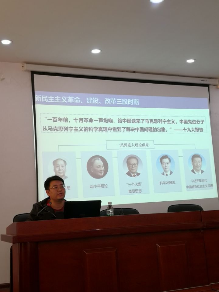开始,韩老师从中国共产党的建党历史背景、发展历程三阶段开始介绍,把中国共产党思想政治教育史、中国共产党的思想理论联系马克思主义中国化做深度解读,使同学们更了解了什么是马克思主义,什么是中国共产党。韩老师问现场的各位同学直击灵魂的六问让大家对中国共产党的发展和经历更深的思考和体会。大家深刻明白了是历史和人民选择了中国共产党。韩老师通过介绍历史中鲜活的老党员事迹和新时代的中国发展力量对中国共产党的信仰和目标做以生动具体的介绍,启发同学们思考“我为什么加入中国共产党”。使得同学们对党有了更深层次的理解与思考。