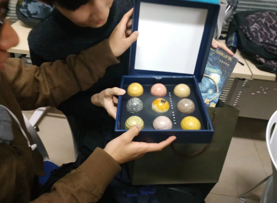 因为是随机抽取,每个人都不知道谁能得到自己精心准备的礼物、自己将要获得什么礼物。为了给抽到自己的“有缘人”一个惊喜,有的同学自制了颜值与口味并存的水果酸奶捞,有的同学则提前网购了自己最爱的一本书作为礼物,还有同学准备了可爱温暖的毛绒玩具……空气中洋溢着欢声笑语,惊喜与感动并存。